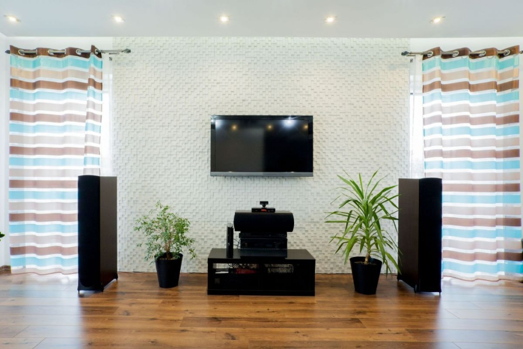- Subwoofer: es el encargado de emitir los sonidos de baja frecuencia y los graves que de otra manera no se podrían reproducir. Se recomienda colocarlo cerca del televisor, pero no siempre es posible por el diseño del mueble. Es importante no ponerlo en la columna o cerca de las paredes para evitar que parte de la calidad del sonido se pierda. Algunas personas optan por ponerlo en una pared lateral, en la parte trasera del espectador y la experiencia también es positiva.